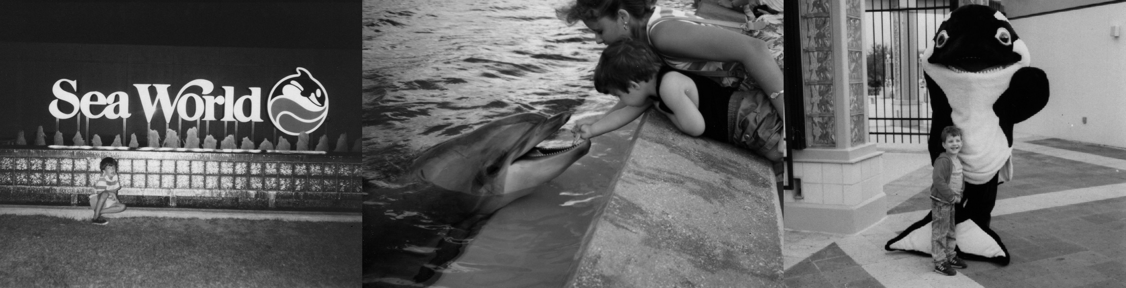 Shamu (I will just use the name as a generic term for now) registered as all kinds of things to me. She (again, inheriting the default from Shamu) was by all accounts a monster, but also cute in a strange way, and just absolutely massive. We stayed for the show and watched Shamu jump and do flips and let the trainers ride around on her and all that and afterward I remember visiting the dolphin cove where back then you could get right up to the dolphins and feed them fish straight out of your hand. If they stuck around long enough you could also pet them (for lack of a better term, I don’t know if you can “pet” a dolphin it sounds weird to say that). The whole experience was surreal because these animals were almost like aliens to me because when all you’ve seen your whole life are dogs, cats, and horses something as different as a killer whale is a shock to the system. But, I found them endearing and because of that my mom has an entire photo album full of pictures of me at Sea World.